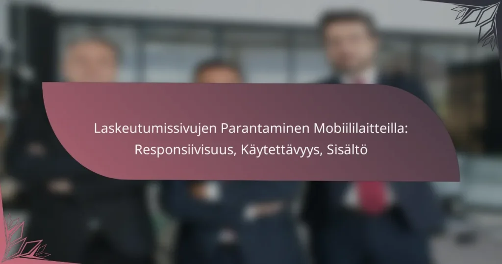 Laskeutumissivujen parantaminen mobiililaitteilla on tärkeää käyttäjäkokemuksen optimoinnin, konversioiden lisäämisen ja poistumisprosentin vähentämisen kannalta. Keskeisiä tekijöitä ovat responsiivisuus, käytettävyyden parantaminen sekä nopeiden latausaikojen varmistaminen, jotka yhdessä luovat sujuvamman ja houkuttelevamman käyttökokemuksen kaikilla laitteilla. Mitkä ovat mobiililaitteiden laskeutumissivujen parantamisen keskeiset tavoitteet? Mobiililaitteiden laskeutumissivujen parantamisen keskeiset tavoitteet ovat käyttäjäkokemuksen optimointi, konversioiden lisääminen ja poistumisprosentin vähentäminen. Näiden tavoitteiden saavuttamiseksi on tärkeää keskittyä responsiivisuuteen, käytettävyyteen, latausaikoihin ja analytiikan hyödyntämiseen. Paranna käyttäjäkokemusta responsiivisuuden avulla Responsiivisuus tarkoittaa, että laskeutumissivut mukautuvat eri kokoisiin näyttöihin, mikä parantaa käyttäjäkokemusta mobiililaitteilla.…