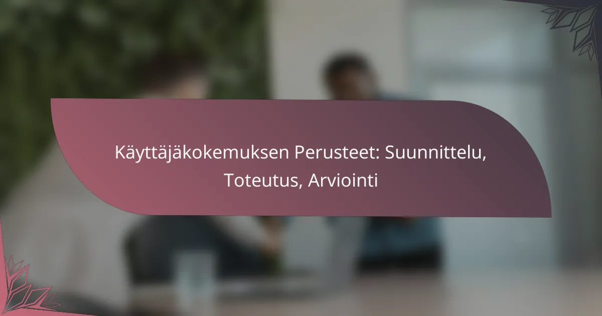 Käyttäjäkokemus (UX) on keskeinen osa tuotteen tai palvelun vuorovaikutusta, ja se kattaa suunnittelun, toteutuksen ja arvioinnin vaiheet. Käyttäjäkeskeinen lähestymistapa varmistaa, että käyttäjien tarpeet ja odotukset otetaan huomioon, mikä johtaa intuitiivisiin ja käyttäjäystävällisiin ratkaisuihin. Tehokas UX vaatii jatkuvaa yhteistyötä ja palautteen keräämistä, jotta lopputulos vastaa käyttäjien vaatimuksia.